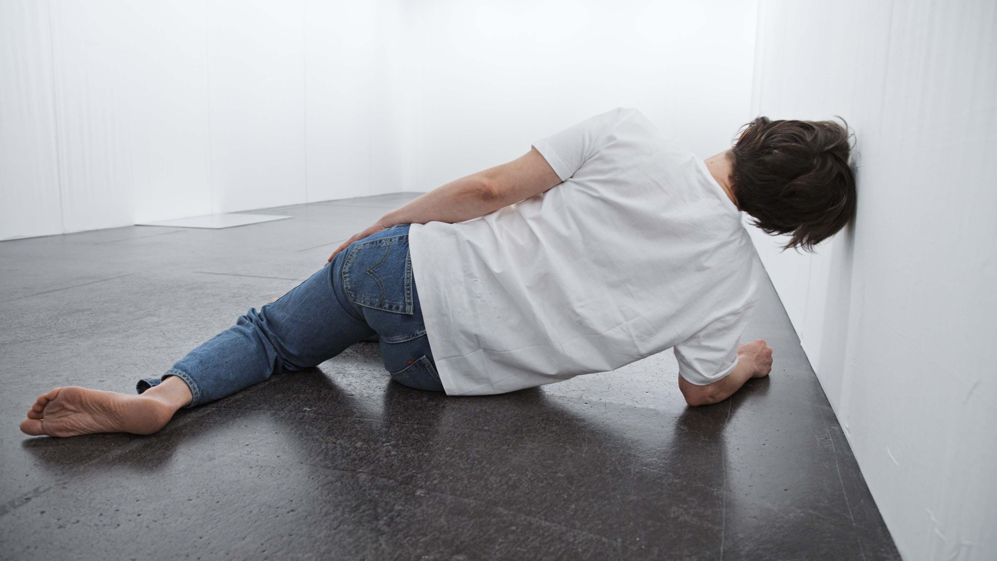 In her video work seeping in, Stefanie Knobel expands on the tension between the Volkarthaus, its history, and the (own) body. It is located in the representative atrium of the Volkarthaus on the ground floor. The video combines a sequence of movements in the exhibition space with a text addressed by the artist to cotton, in which she takes up the fundamental importance of cotton for continental Europe as capital and thus names the capital entanglements that extend into cultural institutions—into the so-called “neutral” white cube — and into her own white body. The artist's performance is analogous to a tentative moment of questioning, in which “the body writes with the body.” Stefanie Knobel follows a specific grammar that draws on past performances and is formed from the movements of textile workers, textile machines, and the structure of her own body. The movements result from an internal physical compositional process in which the artist addresses specific parts of the body. She rubs against the hand-woven fabric, hesitantly, searching, vertically and horizontally, up to the ceiling. “I enter into a dialogue with the cotton, but I also seek contact with the White Cube as a ‘value-producing apparatus’. My movements are controlled by the hyoid bone, which is connected to hearing and thus, for me, to attentive listening,” is how the artist describes her approach.
